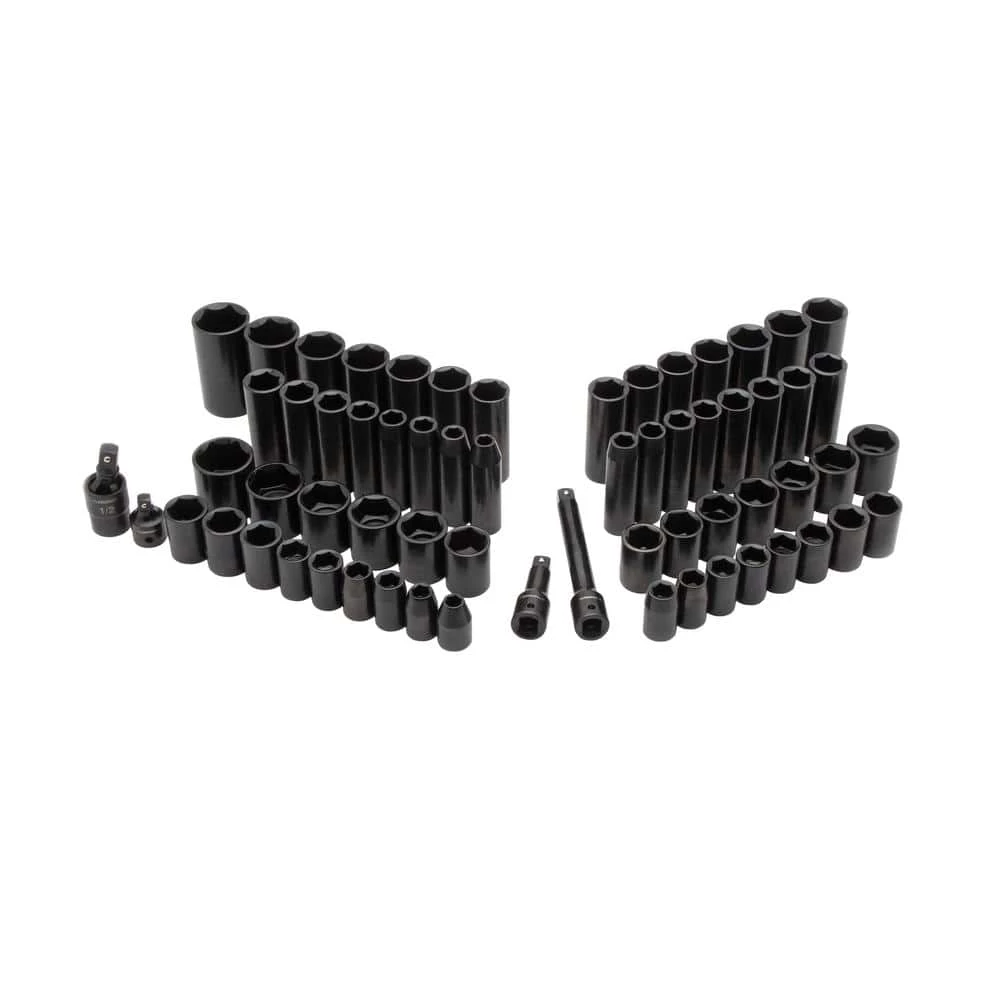 - Set includes one 1/2 in. impact extension bars one 1/2 in. to 3/8 in. drive impact adapter one 1/2 in. drive impact universal joint, 30 standard impact sockets – SAE: 3/8 in. to 1-5/16 in. and metric: 13 mm to 27 mm 30 deep impact sockets: SAE – 3/8 in. to 1-5/16 in. and metric – 13 mm to 27 mm