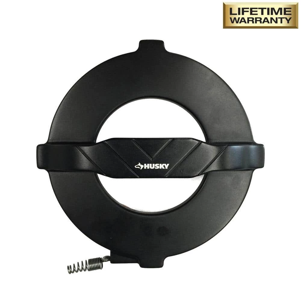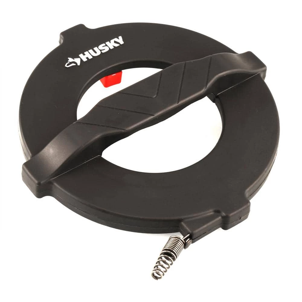 Perfect for removing stubborn clogs in sinks, showers and tubs, the Husky Encased Sink Cleaner helps clear 1-1/4 in. to 2 in. lines up to 20 ft. L. Designed for small household drains, it features an oil-tempered spring steel construction that resists rust and corrosion for a long-lasting use. It comes in a self-storing poly case with easy wind-up design.
