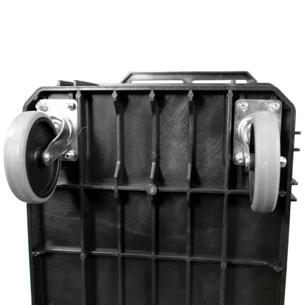 The Husky 2-Shelf Utility Cart has large 4 in. swivel casters for ease of mobility. The cart can hold up to 500 lbs., 250 lbs. on each shelf. Its structural foam construction means the cart won’t dent, chip or peel.