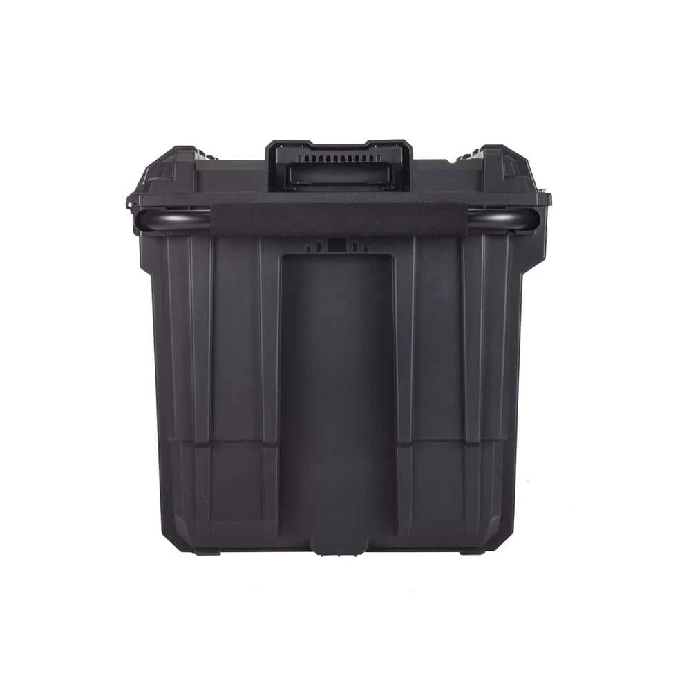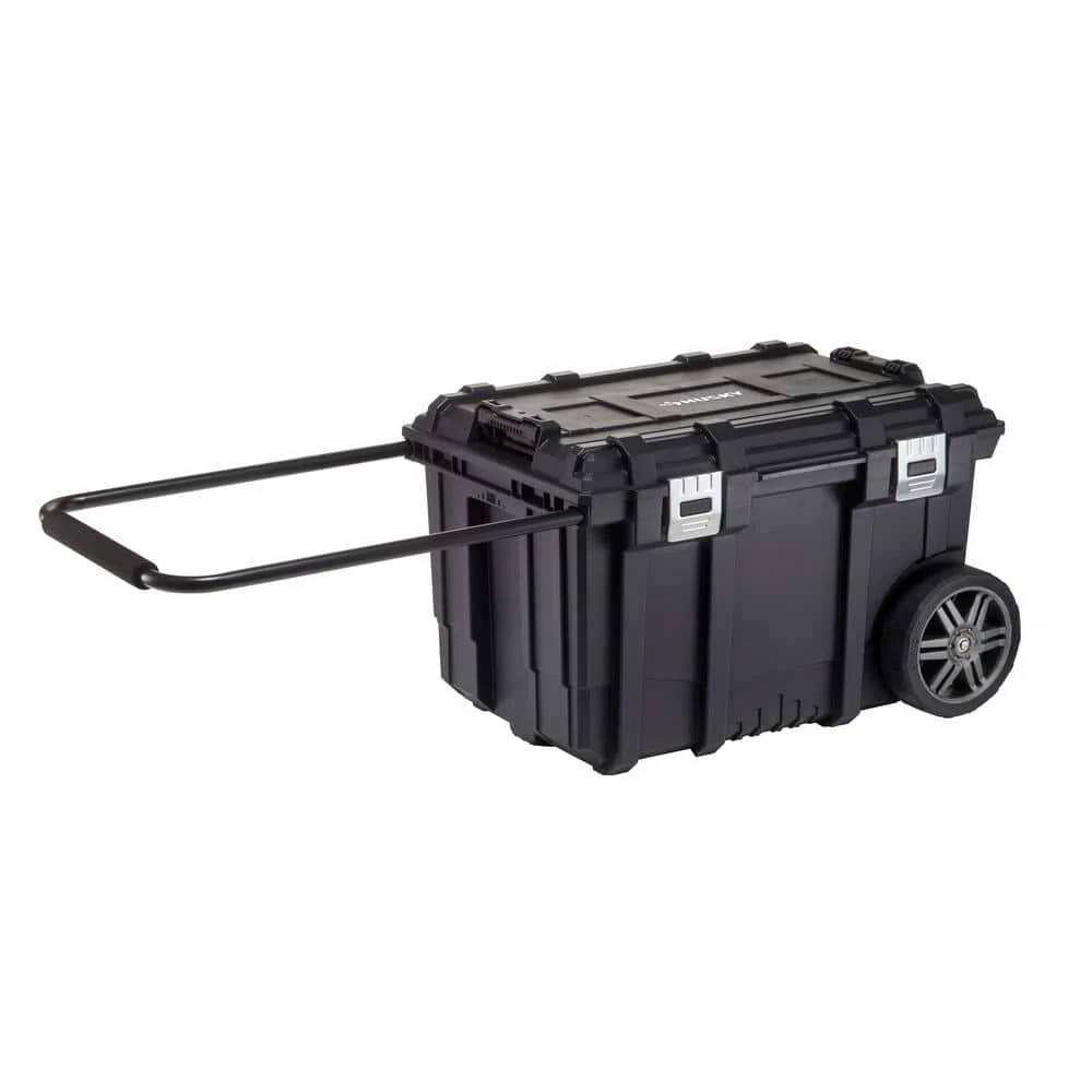 Introducing the new husky 15 Gal. Connect job box. This heavy-duty mobile job box provides a unique way of organizing your tools and parts. The top lid area boasts an innovative connection latches, compatible with other husky connect system product. The base unit has the capacity to accommodate your power tools. This well-designed tool box has 5250 cu. In. Of total storage capacity for organizing and storing your tools and accessories. Large 8 in. All terrain wheels and extendable metal tubular handle makes this cart very mobile on any surface. The job box is also pad lockable.