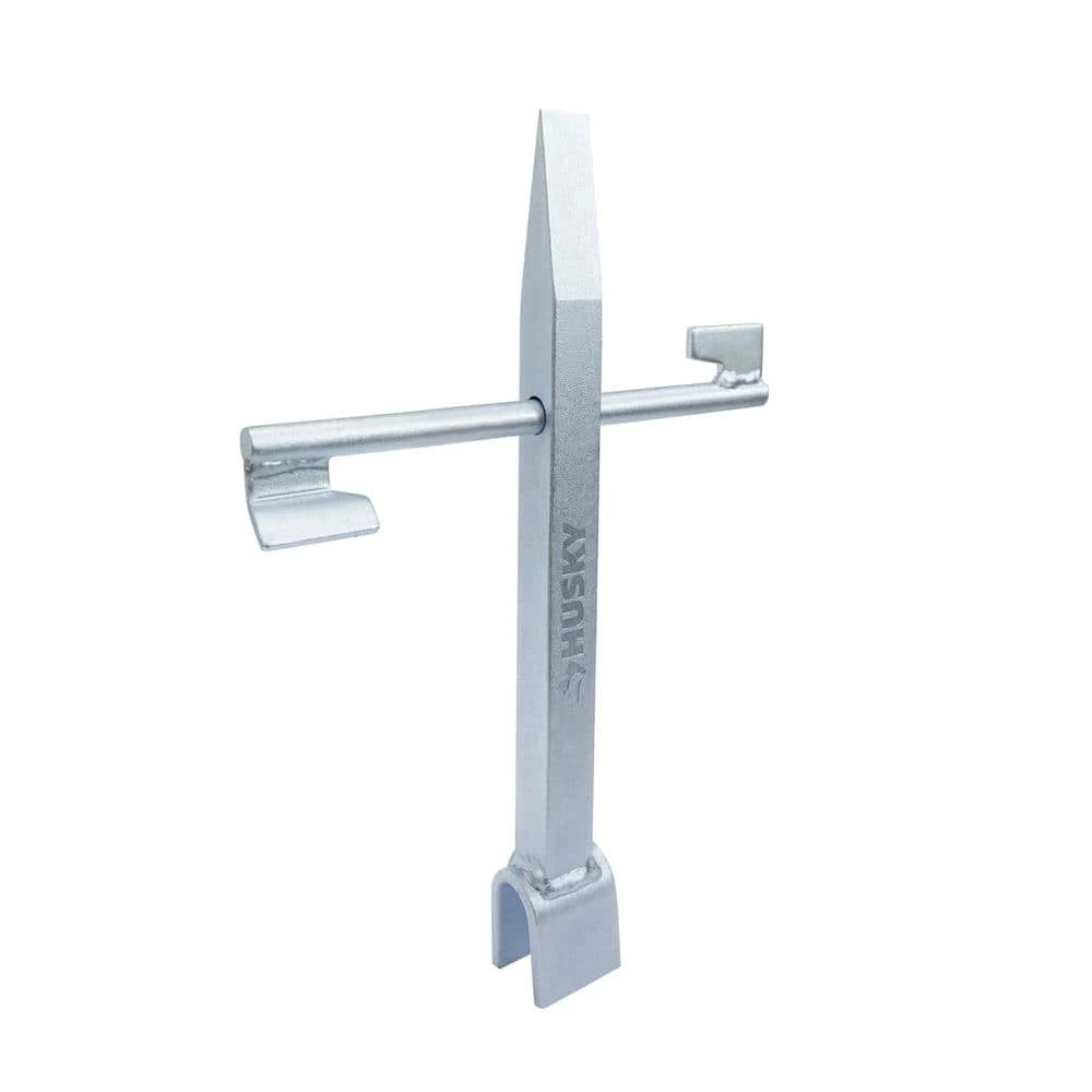 The 4-in-1 Combination Meter Valve Tool features four tools in one. The pry bar helps to loosen stuck valves or open water main covers. The built-in wrench can be used to shut off or turn on water main. The angled and straight keys are designed to open meter/valve box lid. Backed by the Husky Lifetime Warranty.