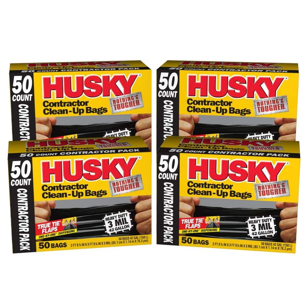The Husky 42 Gal. Clean-up Bags are ideal for all your tough clean-up jobs. Featuring a tear and puncture-resistant design, it includes true tie flaps and 1-by-1 dispensing for an easy use. Its 42 Gal. capacity is strong enough for contractor, commercial or home use.