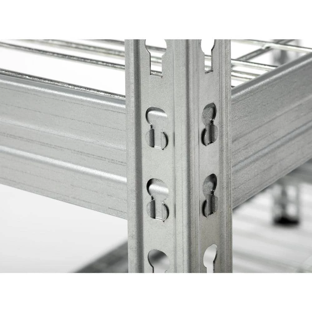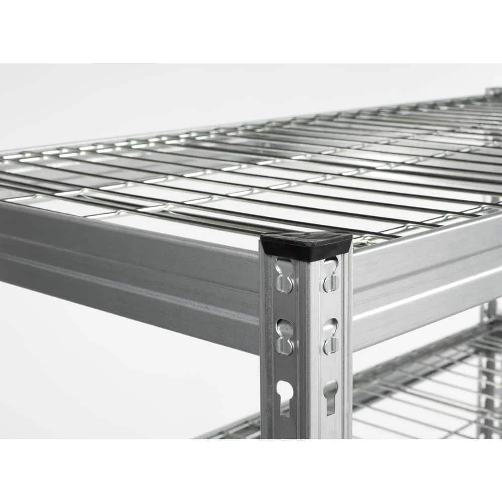 This innovative metal shelving features wire mesh panels. The shelving unit is easy to install due to its unique clipsing system. It has an industrial look and can be used in many rooms of your home. with 5 shelves, this Husky provides lots of storage space, and each heavy duty shelf can support up to 1000 lbs. when the load is evenly distributed. Husky steel shelving features a Lifetime Warranty.