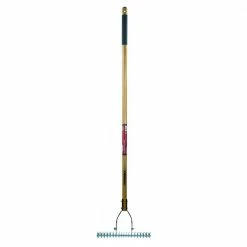 The thatching rake is an all-purpose lawn rake. Its curved tines were designed to clear dead grass clippings from the lawn. This will allow sunshine, air, water and fertilizers in to keep the grass healthy.