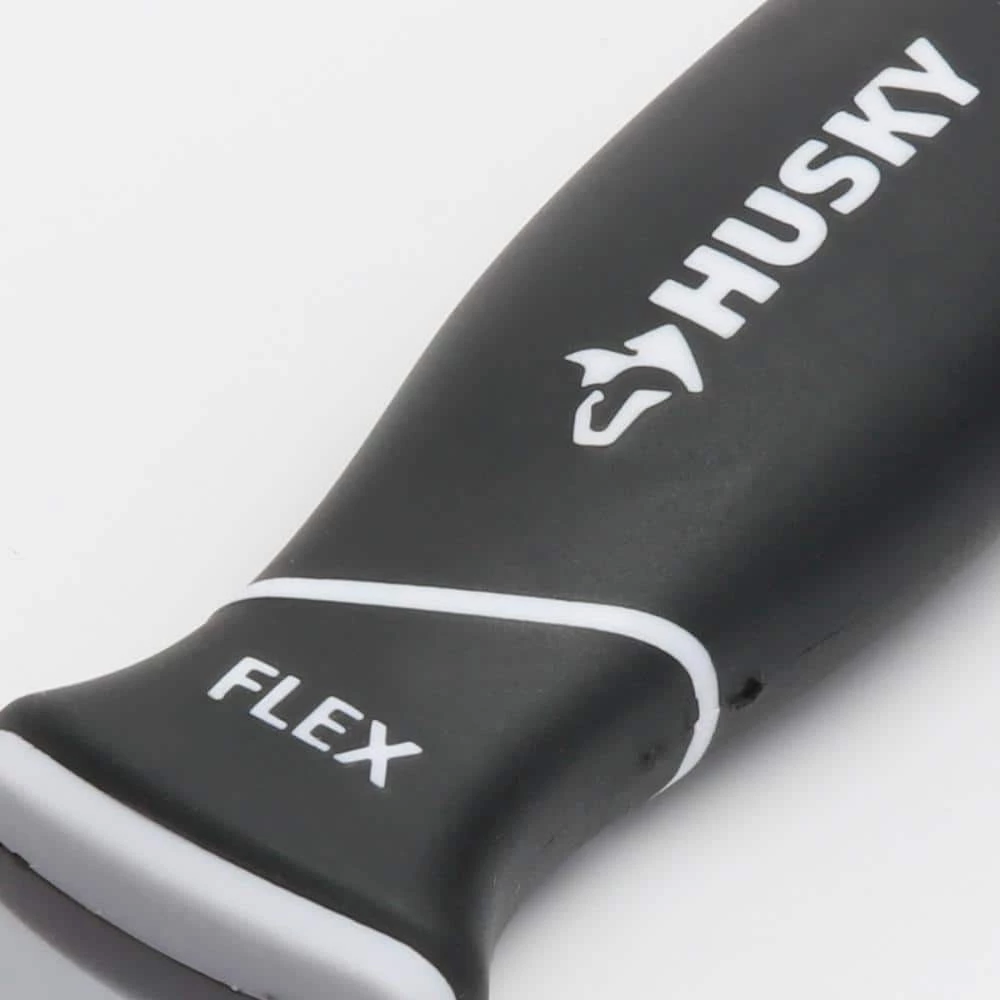The Husky 6 in. Flexible Joint Knife features a hollow-ground carbon steel blade that offers the highest durability and quality finish. The flexible blade bends for easy application of drywall compound and spackle and is both rust resistant and solvent resistant. The soft-grip handle is ergonomically designed to provide comfort and a sturdy grip and includes a finishing hammer end to set drywall nails. Lastly, the easy peel label can be removed from the blade without leaving behind residue.