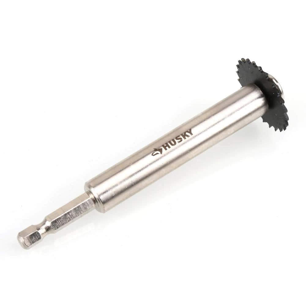 Husky’s Internal PVC Pipe Cutter is used to cut drain stubs to floor or repair broken pipe. It features a heat-treated steel saw tooth blade for faster cutting. The 3 in. shaft can cut from 1-1/4 in. up to 10 in. for nominal PVC schedule 40 pipe. It is designed for use with a standard drill and is equipped with a quick disconnect fitting for impact drills. Backed by the Husky lifetime warranty, this pipe cutter is the perfect addition to your toolbox.