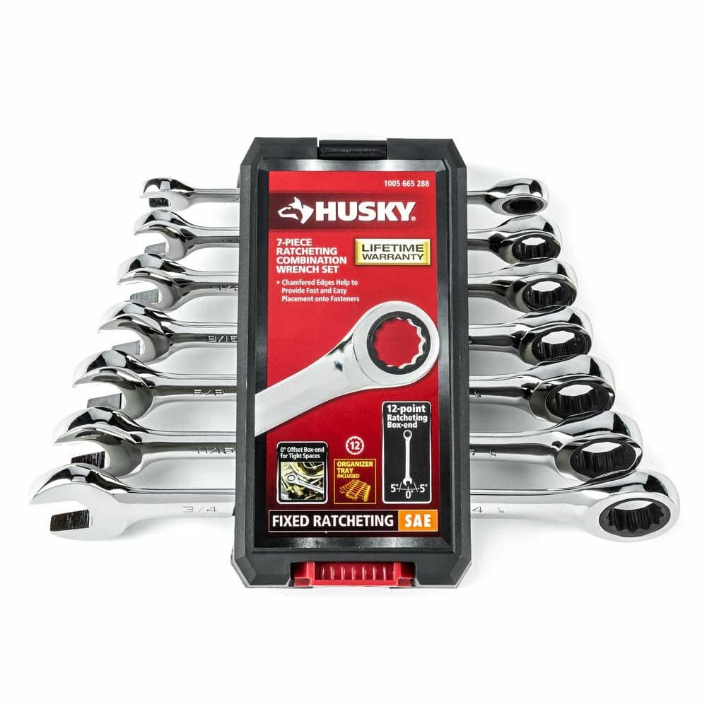 Husky Ratcheting Wrenches feature a 12-point design pattern to help prevent fastener damage and increase torque. Their slim design fits into tight spaces where other wrenches may not fit. The polished chrome finish provides corrosion resistance.