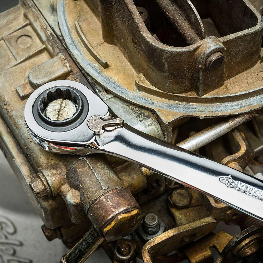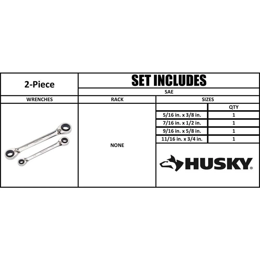 The Husky 2-Piece 4-in-1 Reversible Ratcheting Wrench features a design that offers you 4 wrench sizes from just 1 wrench. This reduces down the number of wrenches you need to carry in your tool box and saves space. The wrench is made from alloy steel for durability and a surface that resists rust.